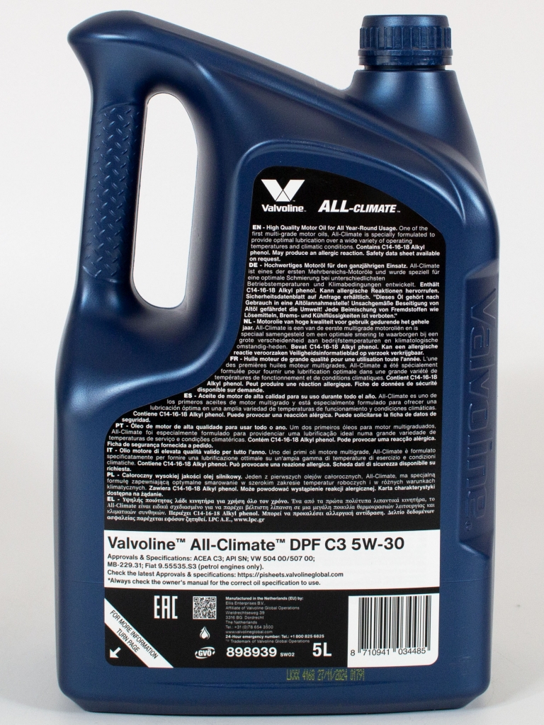 Главная / Моторные масла / Моторное масло Valvoline All Climate DPF C3 5W-30, 5л