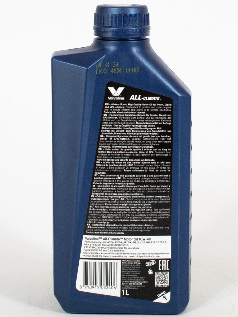 Главная / Моторные масла / Моторное масло Valvoline All Climate 10W-40, 1л